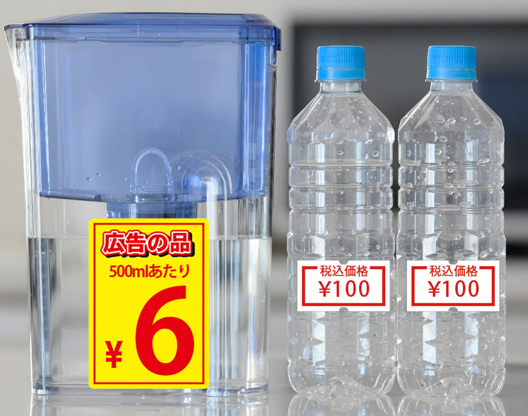 ※カートリッジ価格4,980円に対し濾過量400Lから500mlあたりの価格を換算